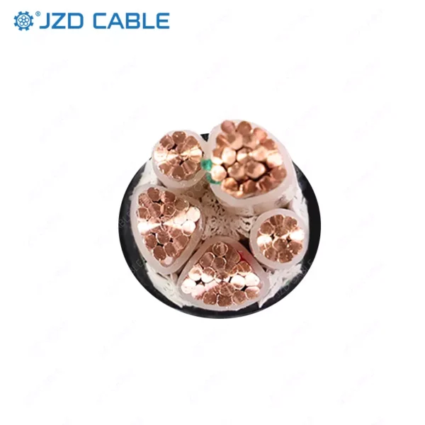 Our ZC-YJV flame retardant power cable in the configuration 3x95mm²+2x50mm² is engineered for robust three-phase power distribution with a dedicated neutral and protective earth conductor, where inhibiting fire propagation is a critical safety requirement. Rated for 0.6/1kV systems, this cable features high-conductivity copper conductors, flame-retardant cross-linked polyethylene (XLPE) insulation, and a flame-retardant polyvinyl chloride (PVC) outer sheath.